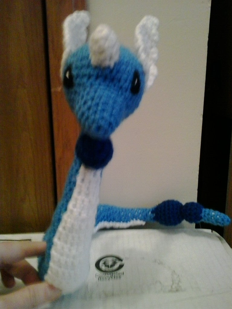 This is an amigurumi plush inspired by Dragonair from the extremely popular Pokemon game developed by Game Freak for Nintendo. Dragonair can be made in either his normal form, or Shiny form, just indicate which version you would like at time of purchase. Dragonair and Pokemon are copyright Nintendo and their respective creators.