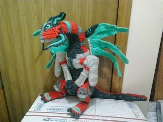 This is an Amigurumi plush inspired by Borreload Dragon from the Yu-Gi-Oh card.game and shows. Borreload Dragon and Yu-Gi-Oh is copyright Konami and their respective creators.