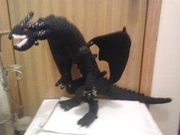 This is an Amigurumi plush inspired by Red Eyes Black Dragon from the Yu-Gi-Oh card game and shows. Red Eyes Black Dragon and Yu-Gi-Oh are copyright Konami and their respective creators.